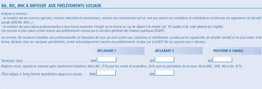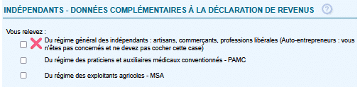 Cette case concerne les indépendants qui ne sont pas au régime micro et qui ne déclarent pas à l’URSSAF.