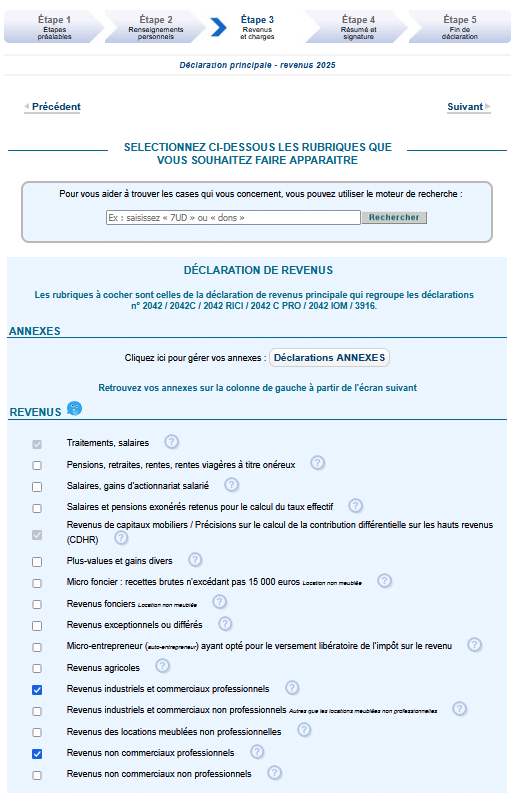 Lorsque tu démarres ta déclaration sur impots.gouv, les deux premières étapes concernent la mise à jour de ta situation.