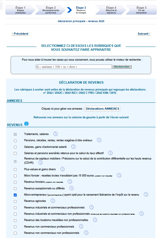 À ce moment-là, l’administration te demande de cocher les types de revenus que tu perçois.