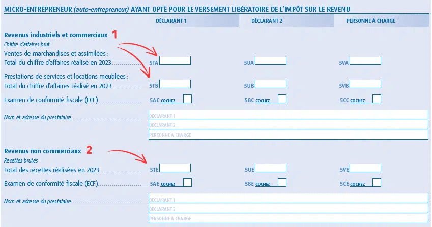 - activité commerciale ou prestations de services BIC → cases 5TA ou 5TB (1)